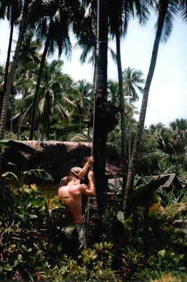 Schilfgedeckt sind. Die Hütten sind so hervorragend in die Kokospalmen