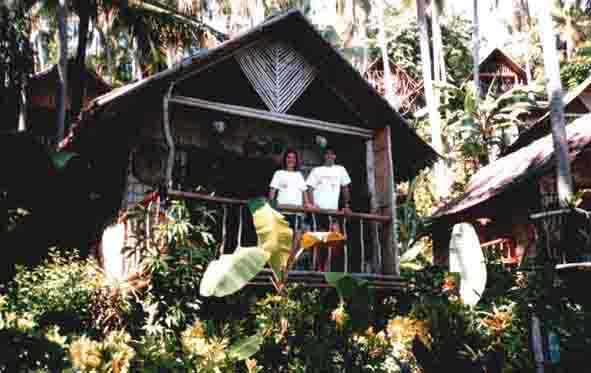 komplette Hotelanlage besteht aus kleinen Bambushütten, welche