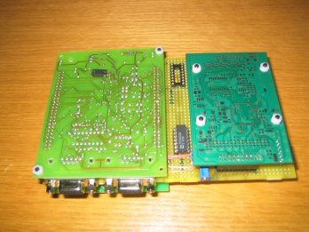 Links ist das EVA-Board und rechts der 70cm-TRX (nach DG7SFL) aufgesteckt.