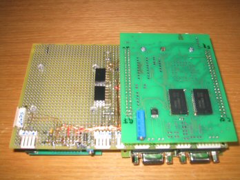 Rechts aufgesteckt erkennt man die Erweiterungsplatine für SRAM,