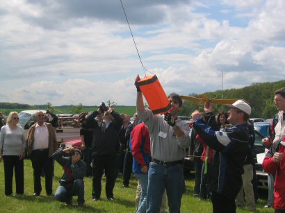 Unmittelbar vor dem Start, mit der Ballonbox in den Händen bin ich links zu erkennen.