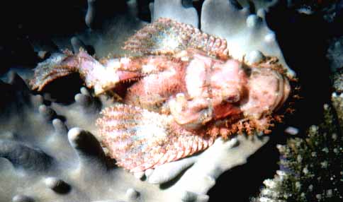 Das Wasser betraegt hier das ganze Jahr ueber zwischen 27°C und 30°C. So braucht man nicht mal beim Tauchen einen Neoprenanzug, sondern kann in Jeans und T-Shirt tauchen. Lediglich um sich vor Verletzungen zu schuetzen, sollte man etwas mindestens knielanges tragen. Unten sind in folgender Reihenfolge zu sehen: 1. Fetzendrachenkopf (Scorpaenopsis venosa) 2. Orangestreifen-Drückerfisch (Balistapus undulatus) 3. 2 Schildkroeten 4. Rotgefaerbter Octopus |