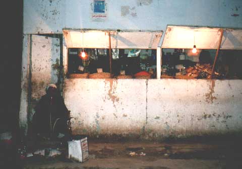 Ein typischer Gewuerzstand mit dem wasserpfeiferauchenden Araber davor.